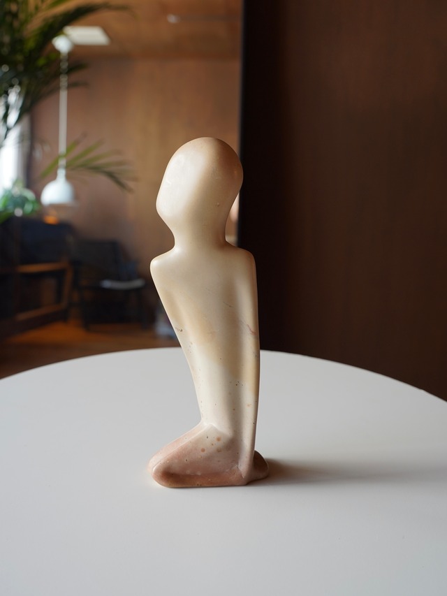 オランダ・ハーレムの蚤の市にて。 ソープストーンとは、石鹸の様な滑らかな質感をもった天然石のこと。 ひざまづく人間をかたどったものです。 足元が若干赤っぽい色になっているのがまた素敵。 1980's Made in Kenya Buying in Haarlem , Netherlands Soapstone W11 / D4.5 / H29 (cm)