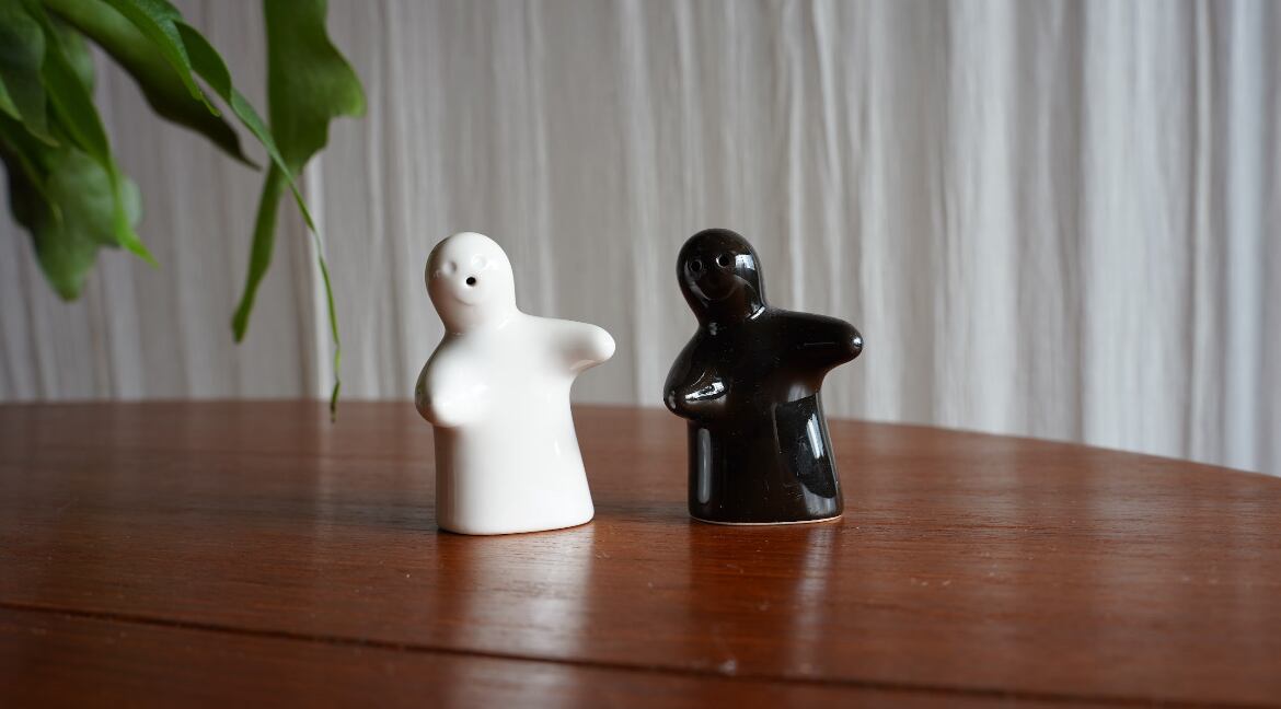 一応、白が塩、黒が胡椒入れとのこと。