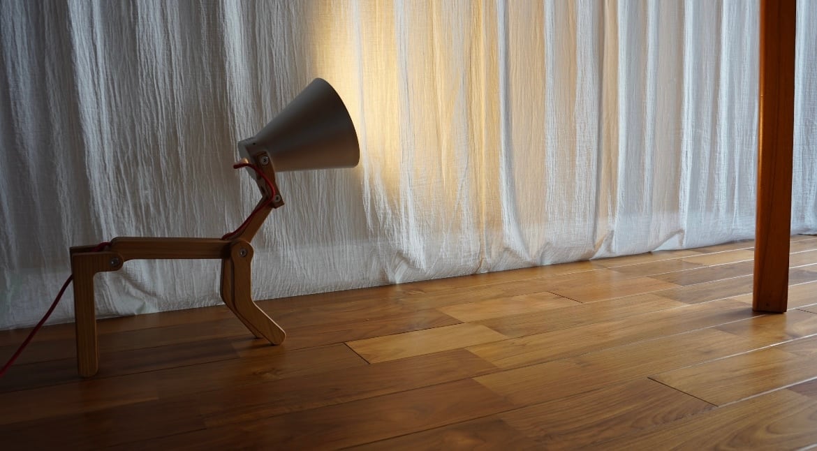 テーブルランプですが、写真のように床に直置きで置いていただくのがおすすめ。