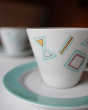 バウハウスやアトミックデザインの影響が見られる、幾何学模様を取り入れた柄は典型的なミッドセンチュリー期らしいプロダクトです。