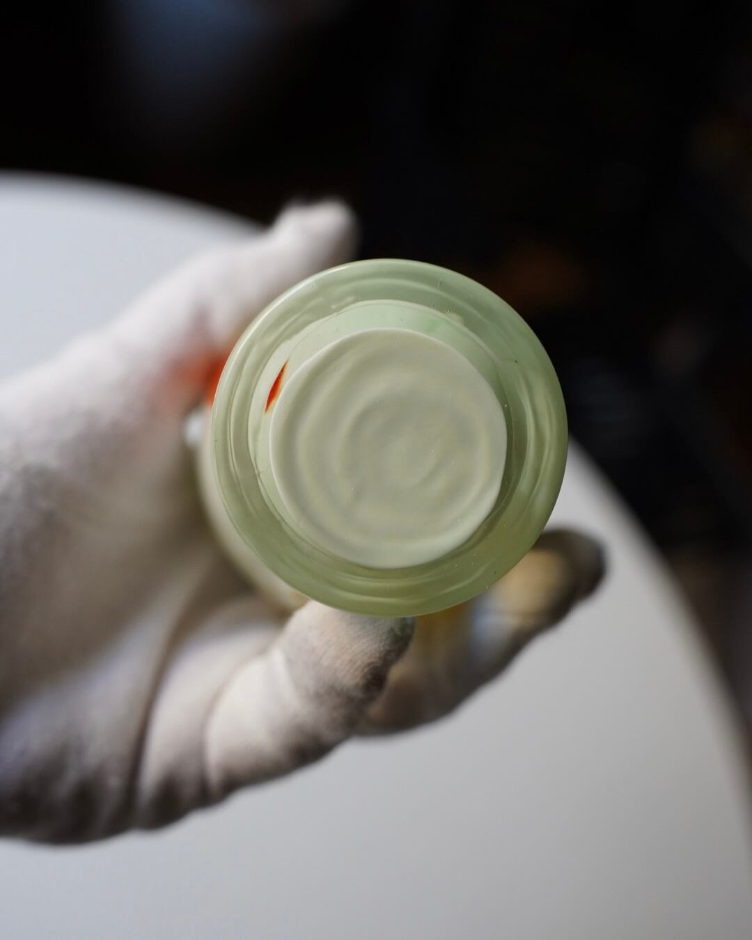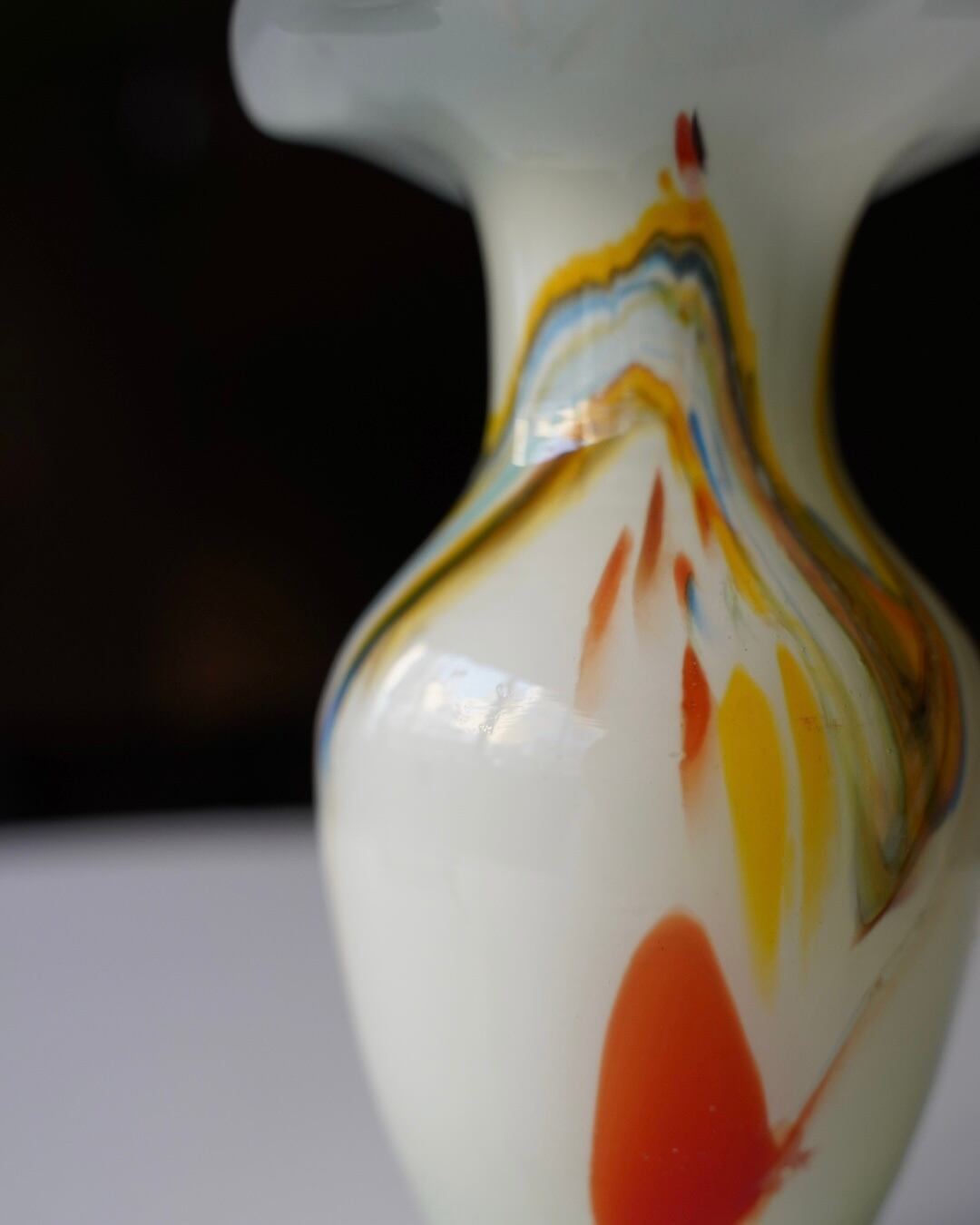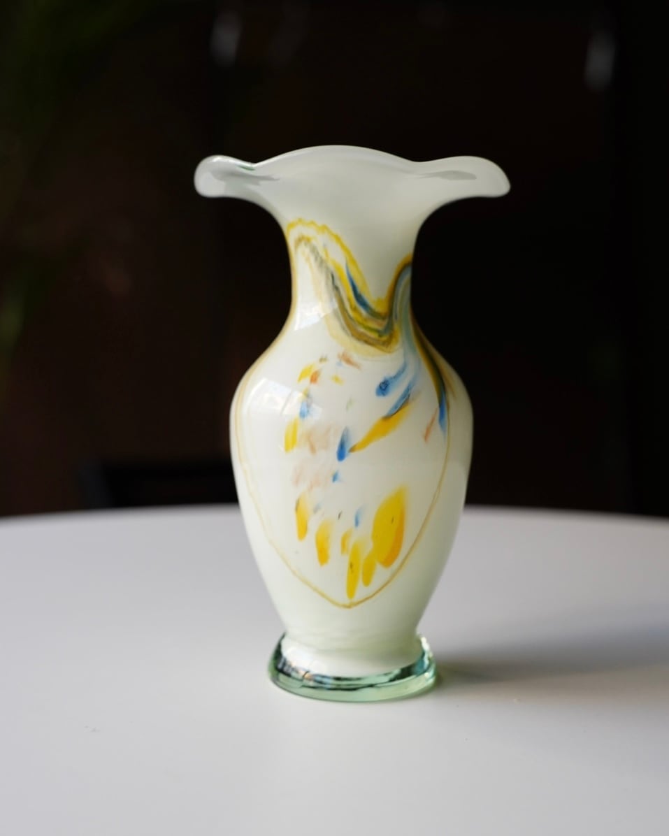 乳白色の地に、色ガラスを引き延ばしたようなマーブル模様が素敵です。