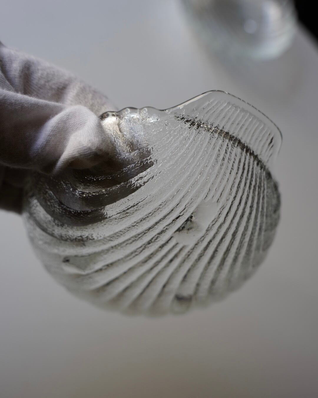 厚手のソーダガラスでつくられた、貝殻ガラス皿。