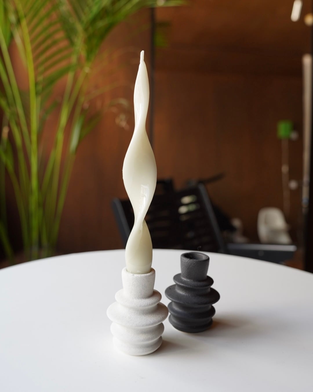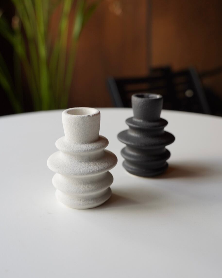 色形はシンプルなので、焼き物の素材感が映えるキャンドルホルダー。