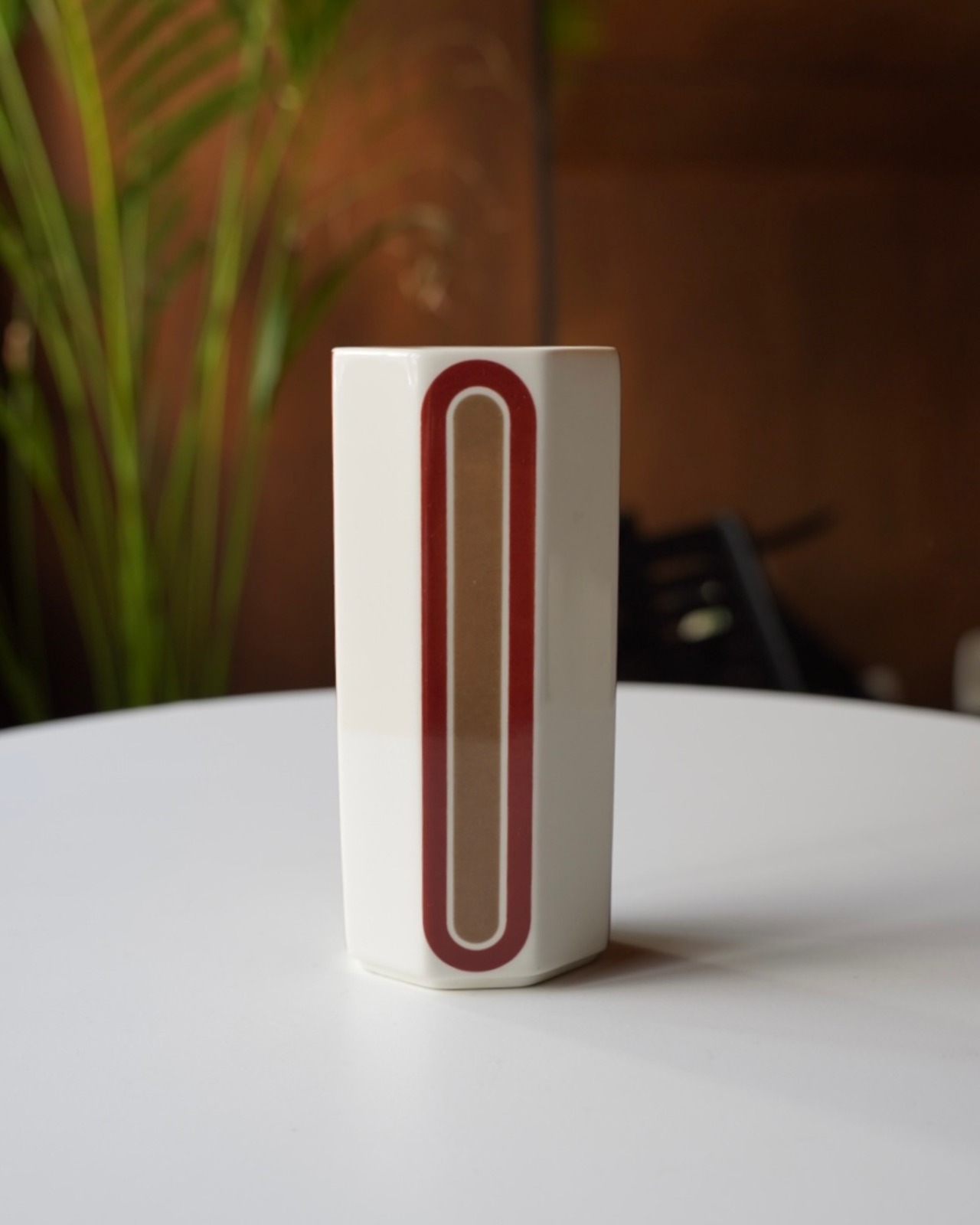 ルクセンブルクの工場でつくられたもので、シンプルなデザインながらもボルドー×ブラウンの配色が珍しい逸品。
