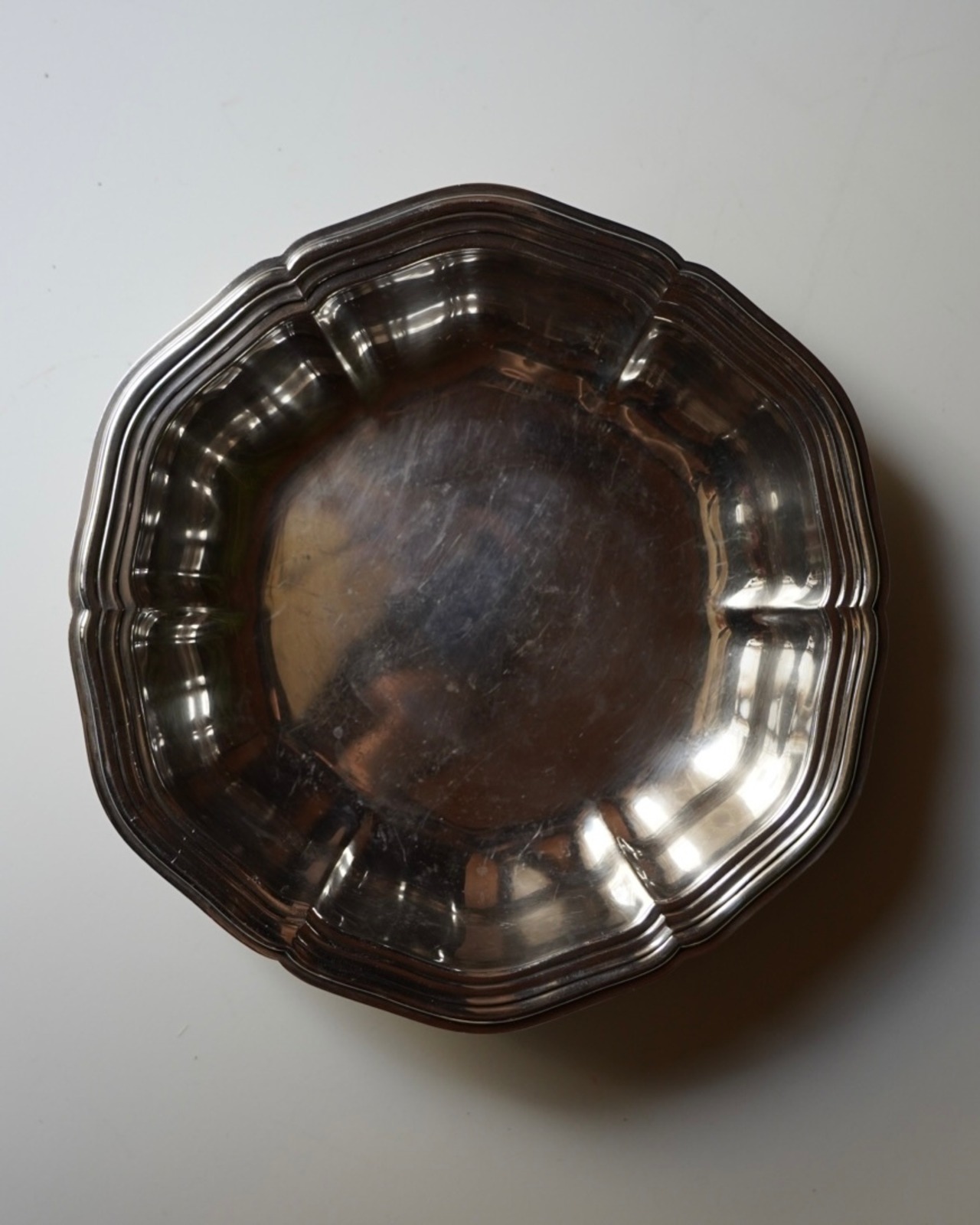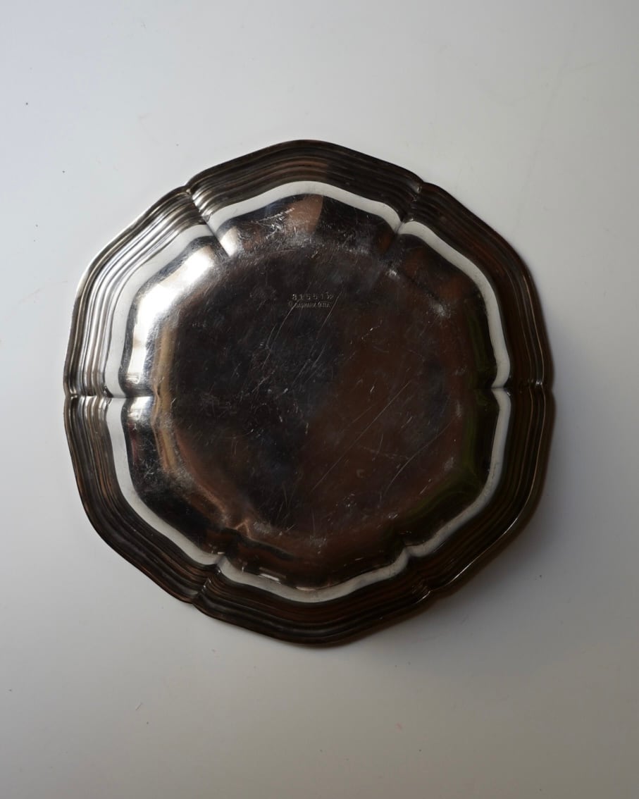 波型の形状と銀メッキの重厚感のある艶が、端正な印象です。