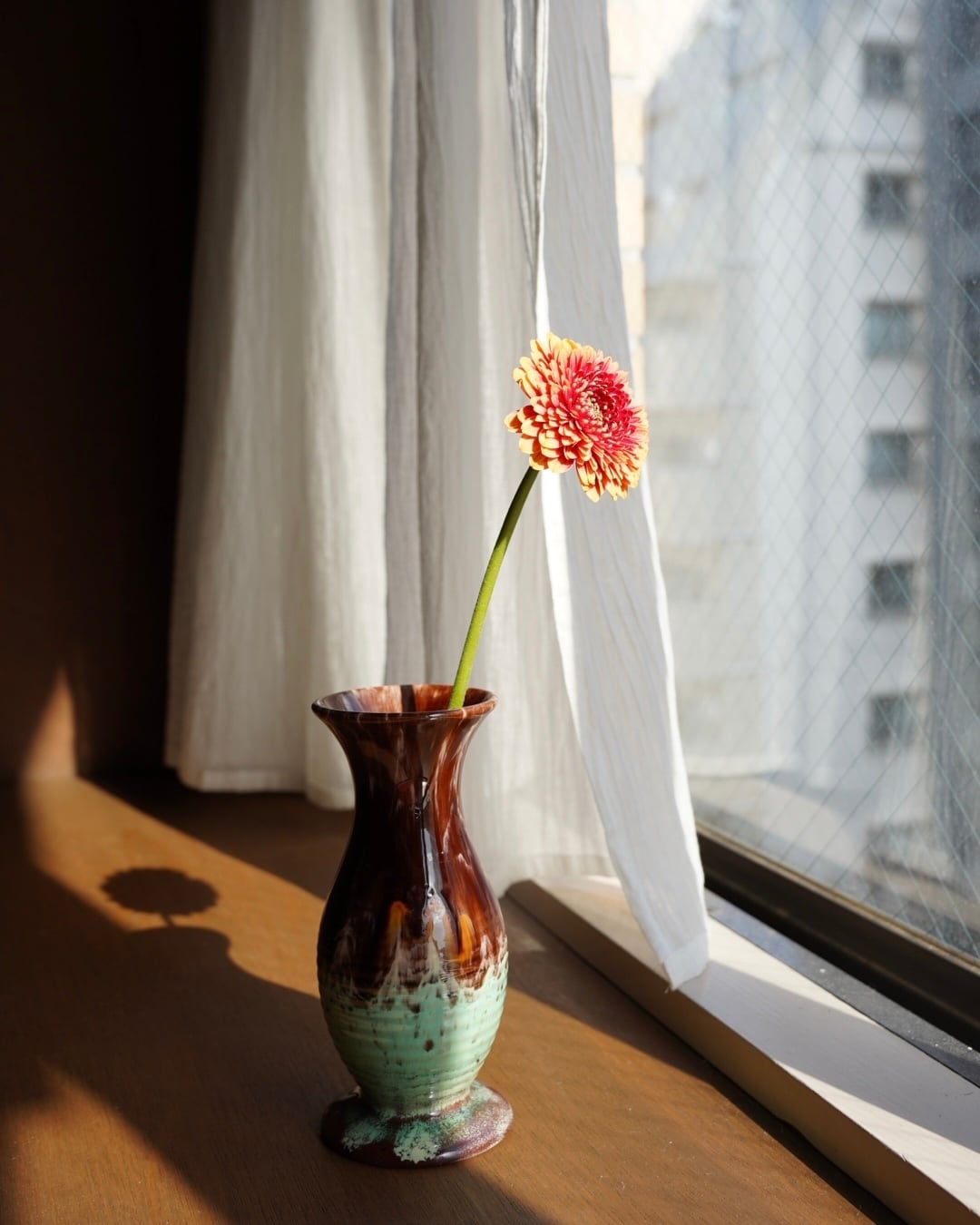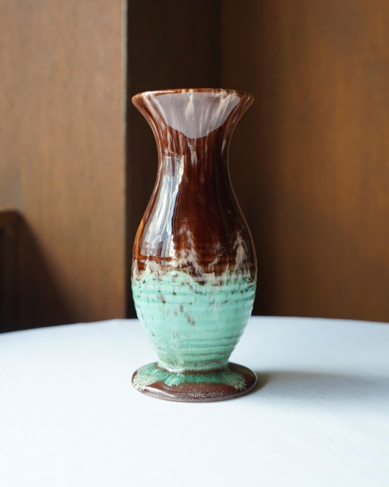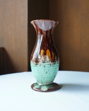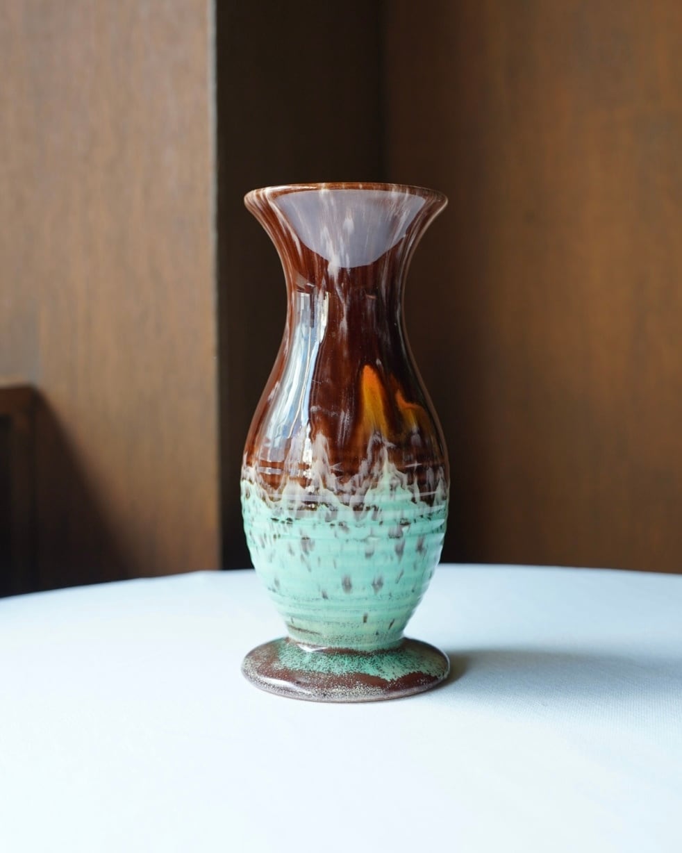 深みのあるブラウン〜鮮やかなターコイズの釉薬づかいは、日本製のものには見つかりづらい風合い。