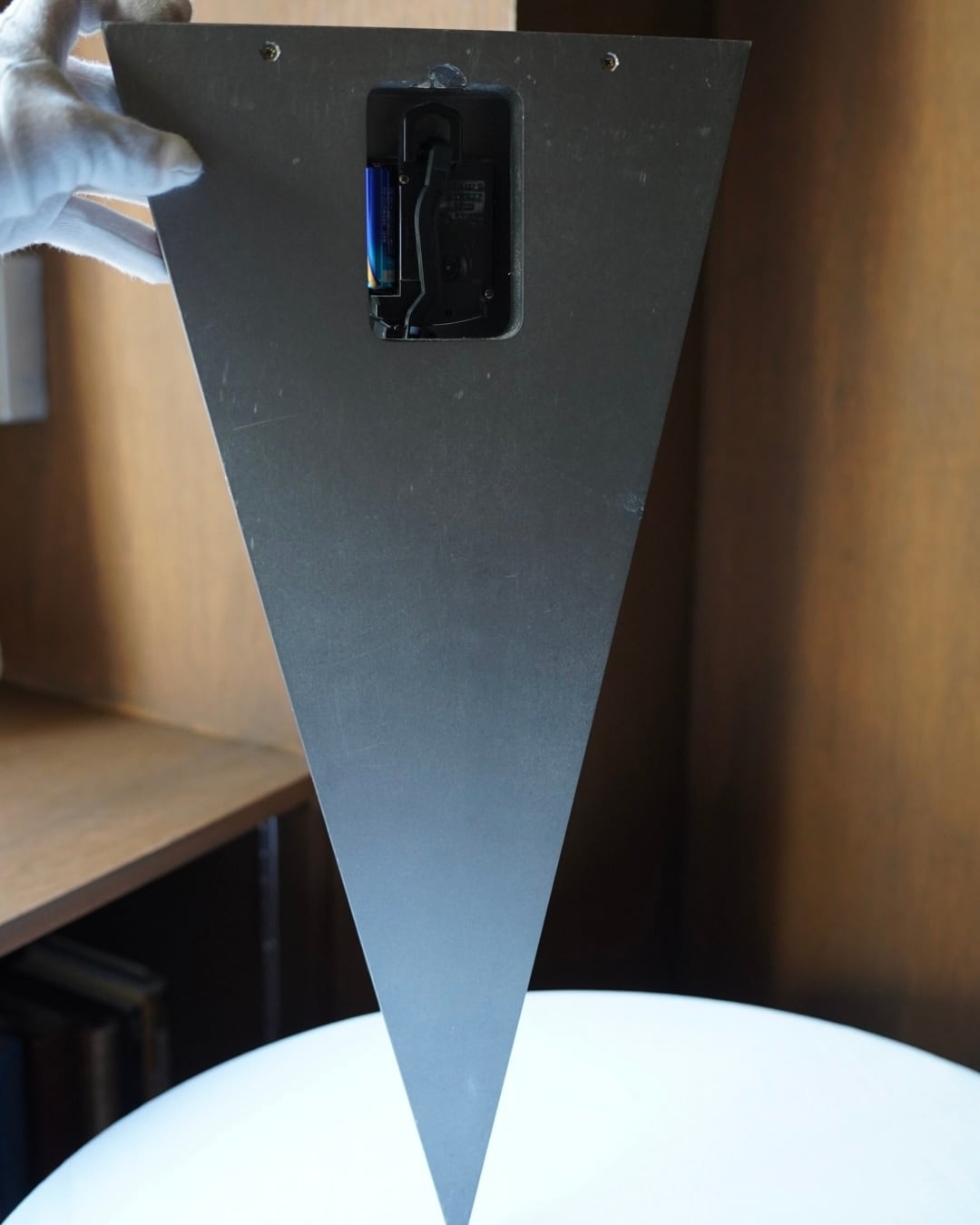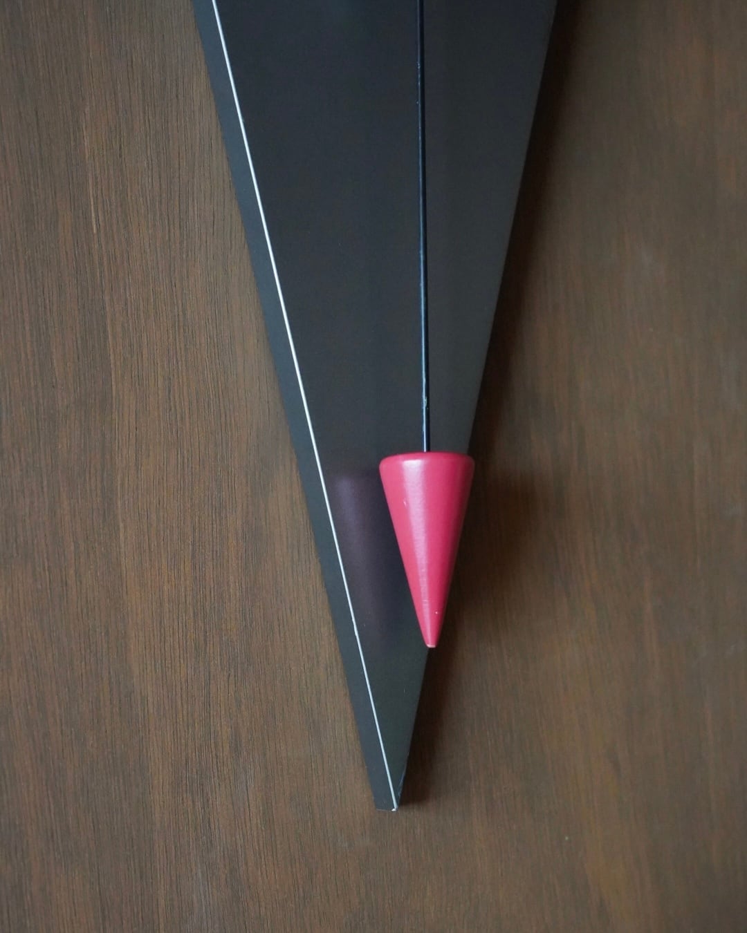 幾何学的なデザインと、黒と赤のはっきりした色合いは、80年代の製品に典型的なポストモダンデザインです。