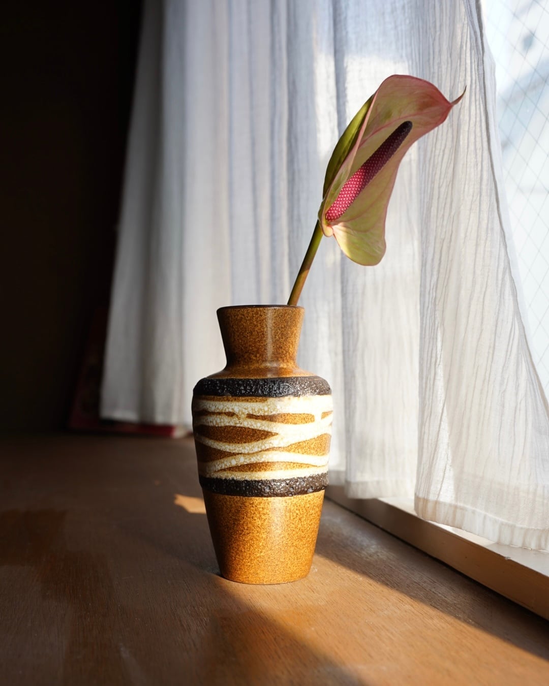 ブラウンの釉肌と流れるような模様が渋い雰囲気。