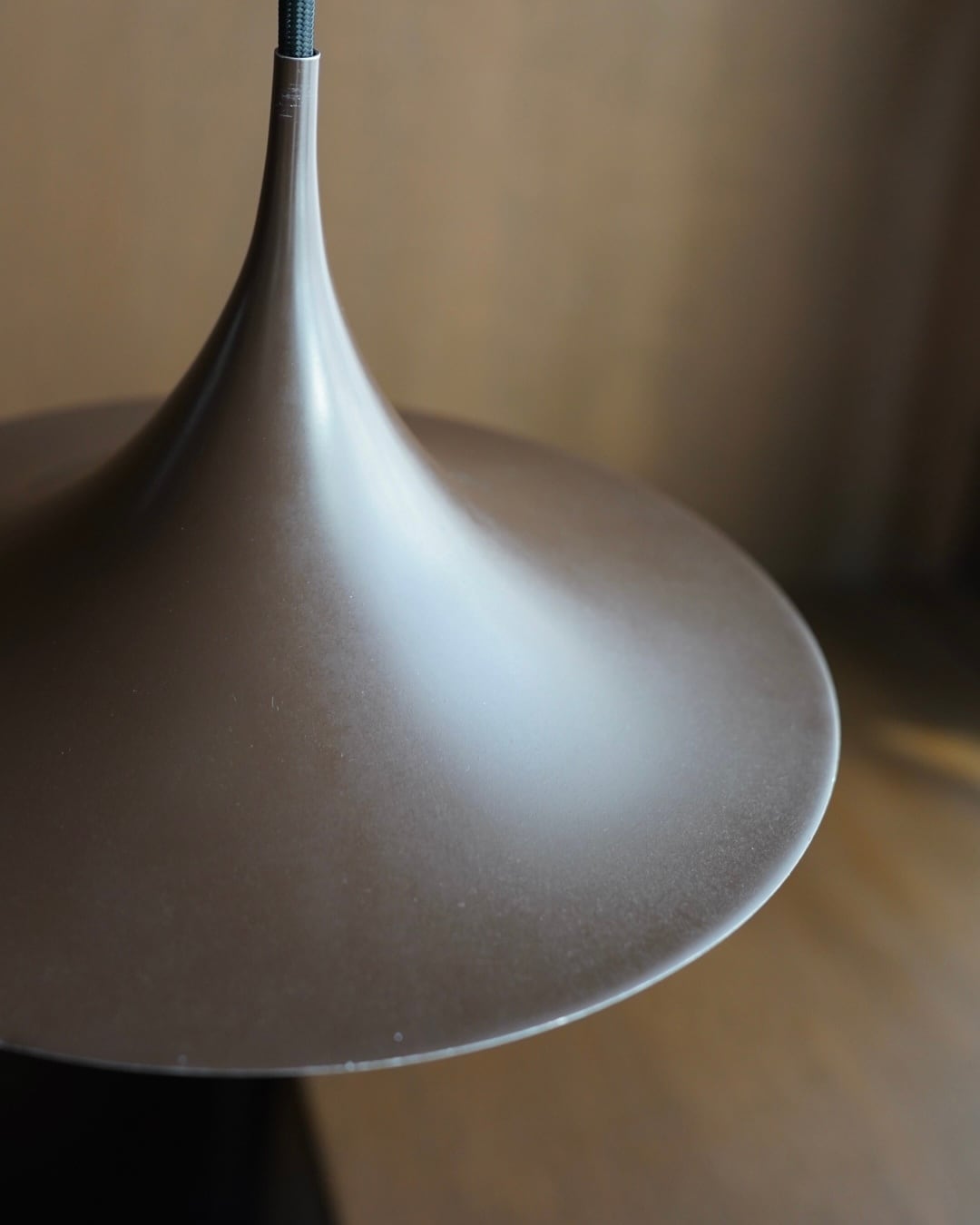 下に向かって大きく開く完璧な左右対称のシェードが特徴で、プレス成形されたアルミニウム素材となります。