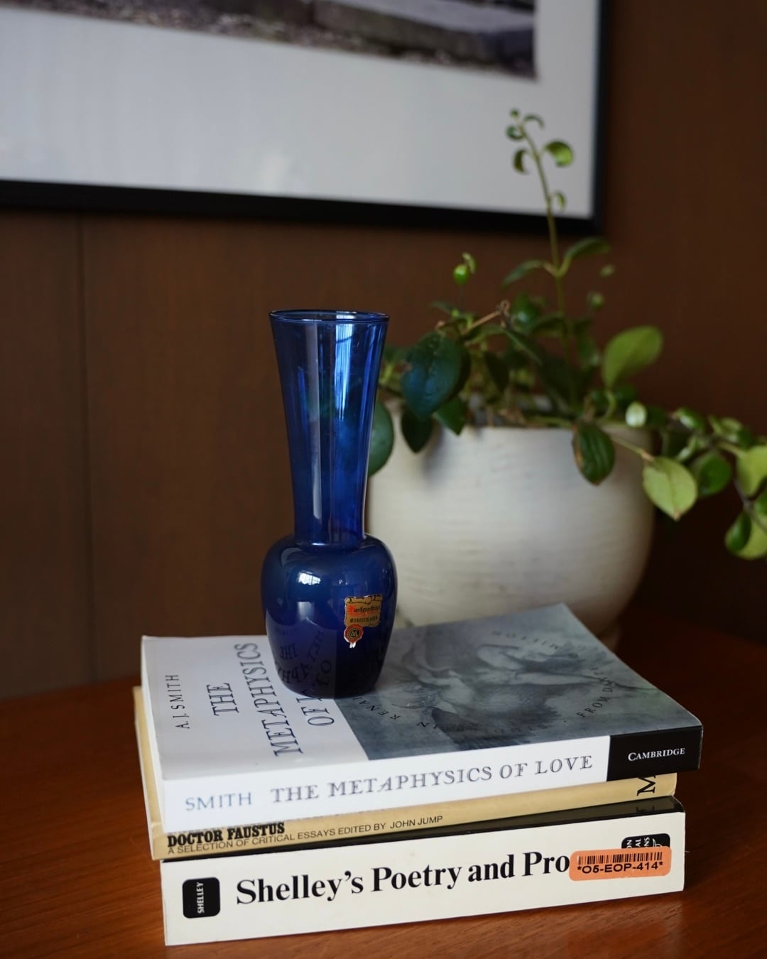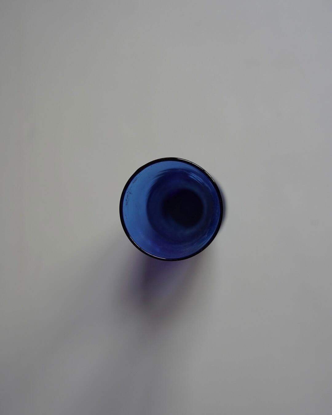 ロイヤルブルーが美しく輝くガラス製の花器。