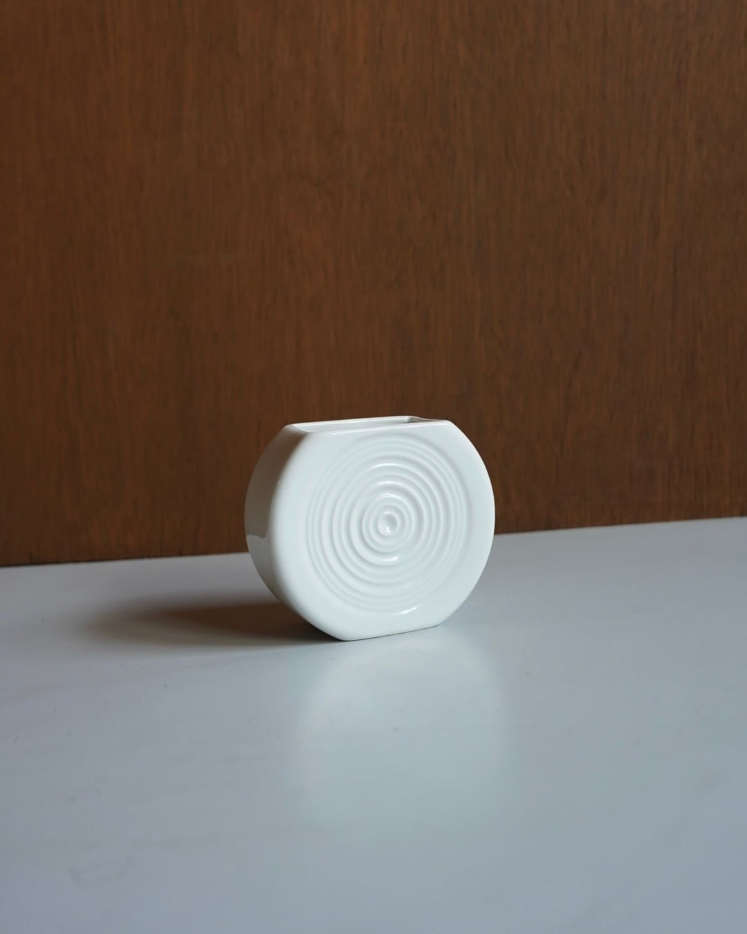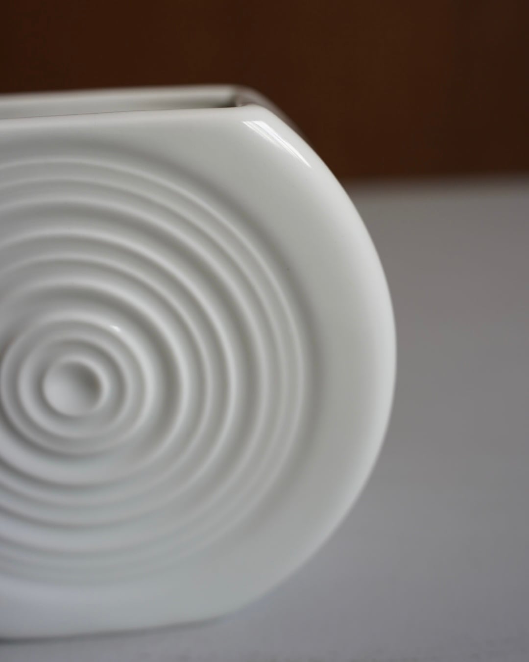 白地に同心円のレリーフが美しく、シンプルながらも個性的なデザイン。